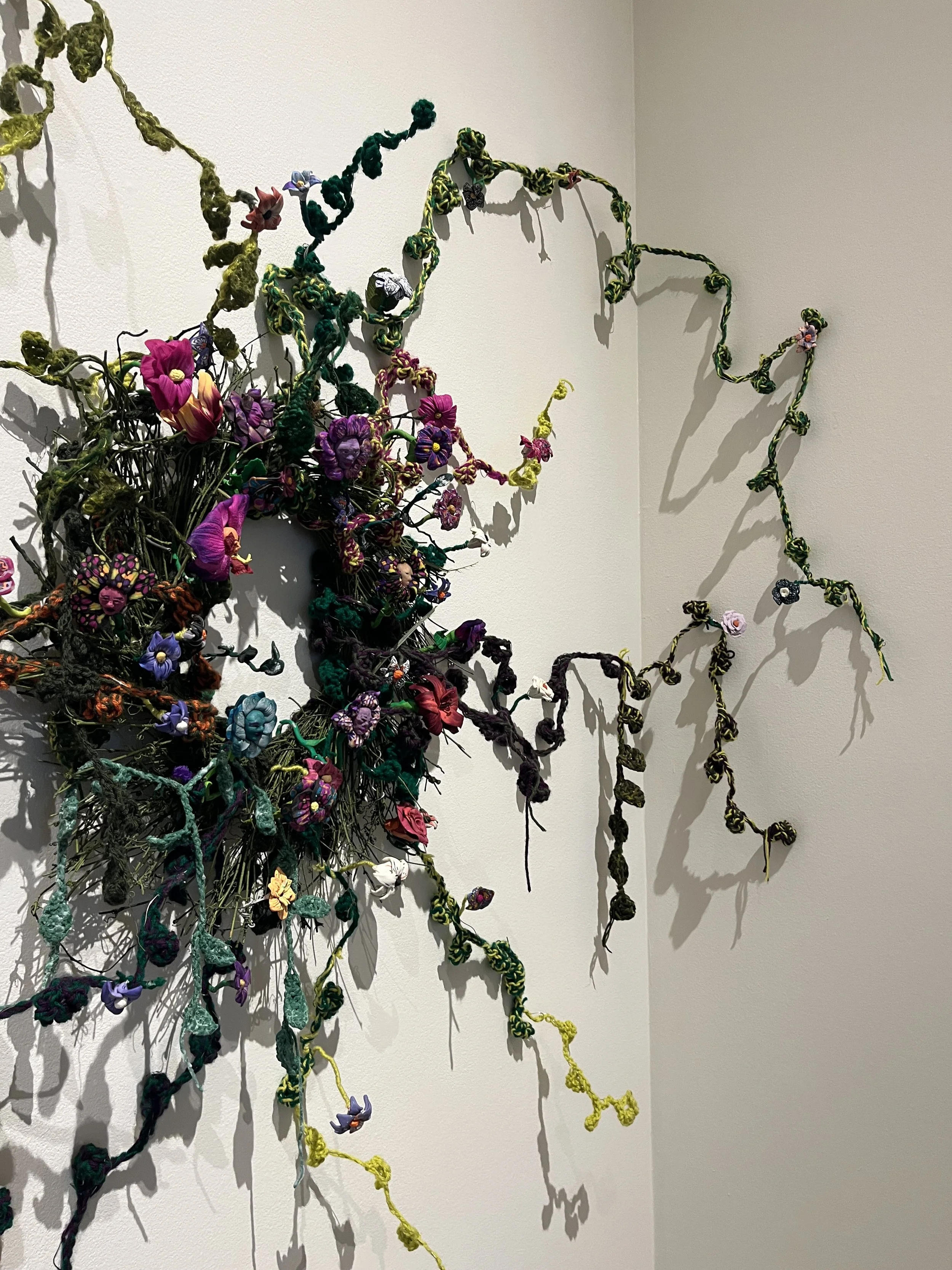Mixed Media: airdry clay, yarn, wire, found objects, polymer clay